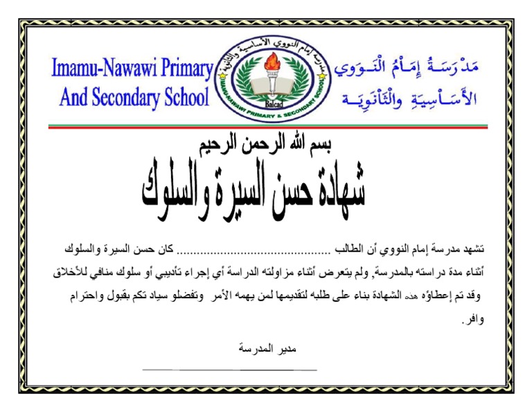 شهادة حسن سير وسلوك للمدارس