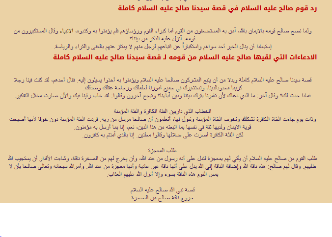 اجمل قصص النبي محمد صلى الله عليه وسلم. قصة قوم نبي الله صالح واستنتج العظة والعبرة منها مختصرة لمادة لغتي ابحث واكتب واغني ملفي للصف.