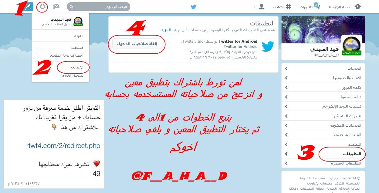 فهد الجهني On Twitter طريقة الغاء الاشتراك بتطبيقات الرتويت التلقائي التي تتدعي بـأنها خدمة جديده من تويتر و هم يستغلون صلاحياتك Http T Co Fafazjw1ye