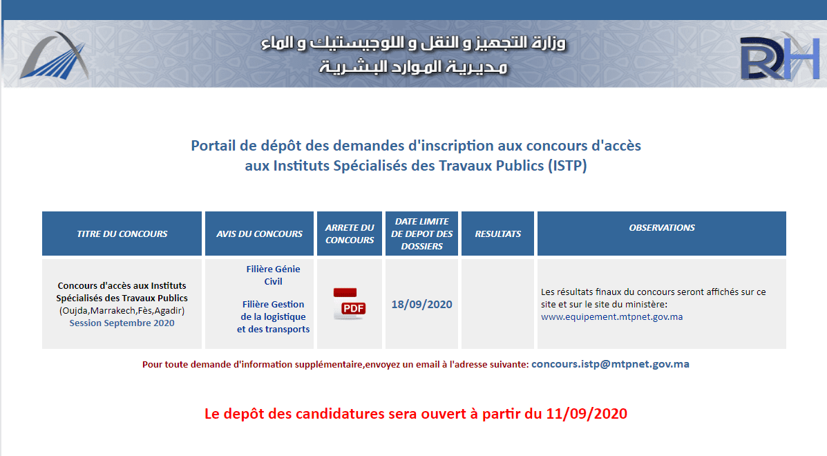 Inscription Concours Istp Oujda Marrakech Fes Agadir 2020