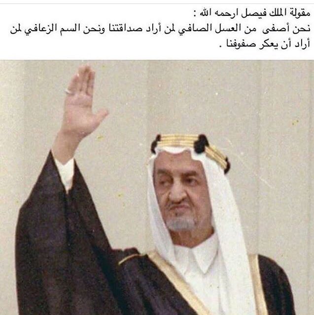 من اقوال الملك فيصل نحن اصفى من العسل. بندر بن عبدالله ال مفرح نحن أصفى من العسل لمن أراد صداقتنا ونحن السم الزعاف لمن أراد تكدير صفونا. قالها الملك فيصل وحفظها آلشعب. الملك فيصل رحمة الله نحن أصفى من العسل الصافي لمن اراد صداقتنا ونحن السم الزعاف من أراد يعكر صفوفنا. نحن أصفى من ألعسل ألصافي لمن أراد صداقتنا ونحن ألسم ألزعاف لمن أراد أن يعكر صفونا.